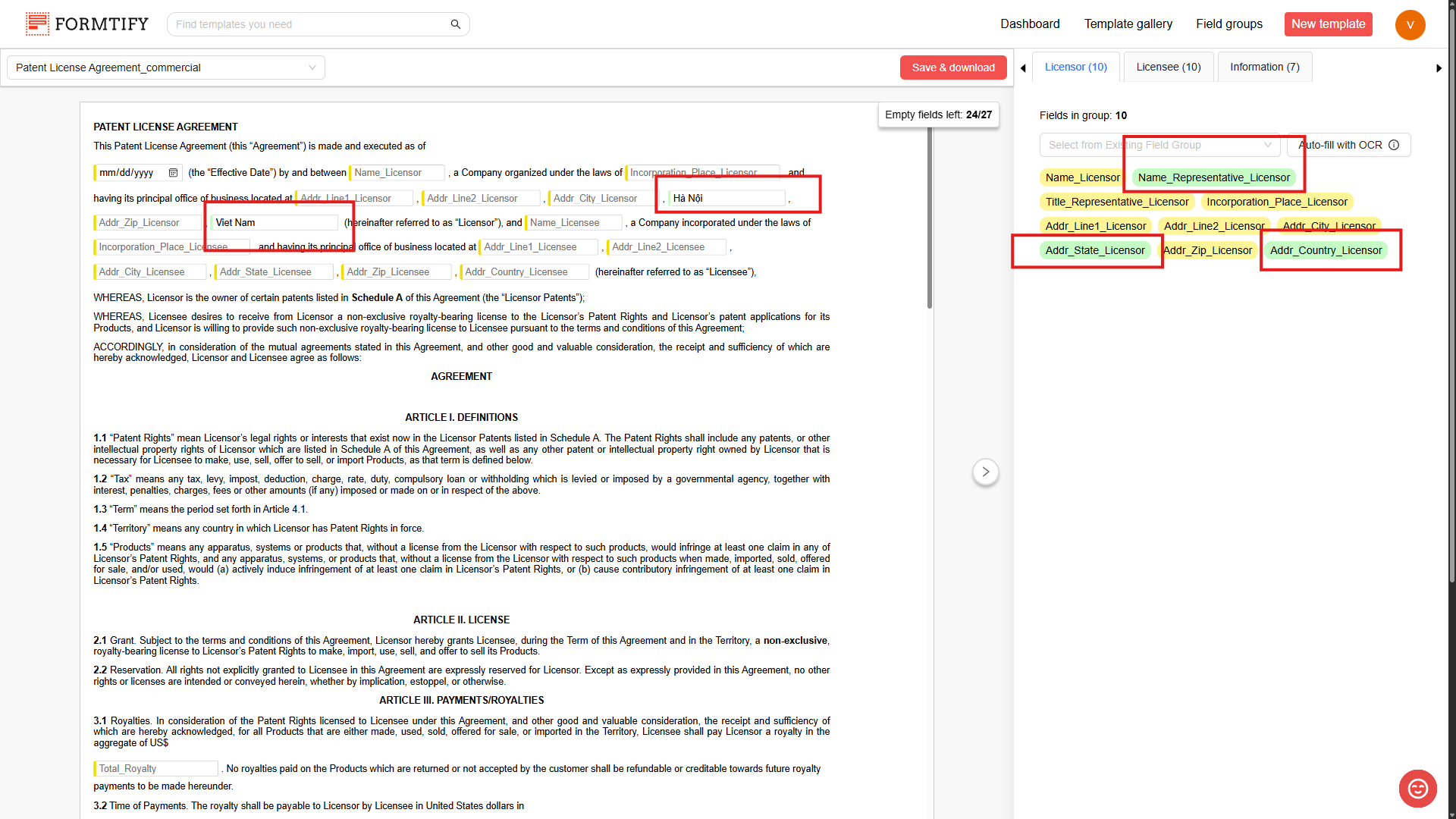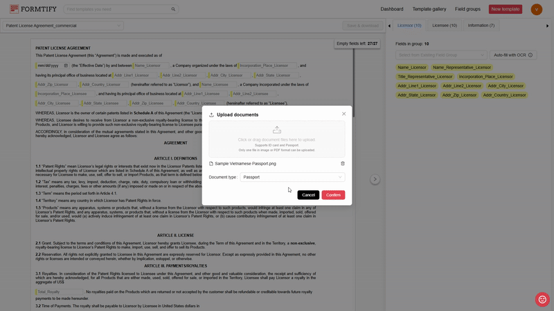 - Once mapping is complete, OCR will automatically fill in fields across any template in the set that shares the same field keys.