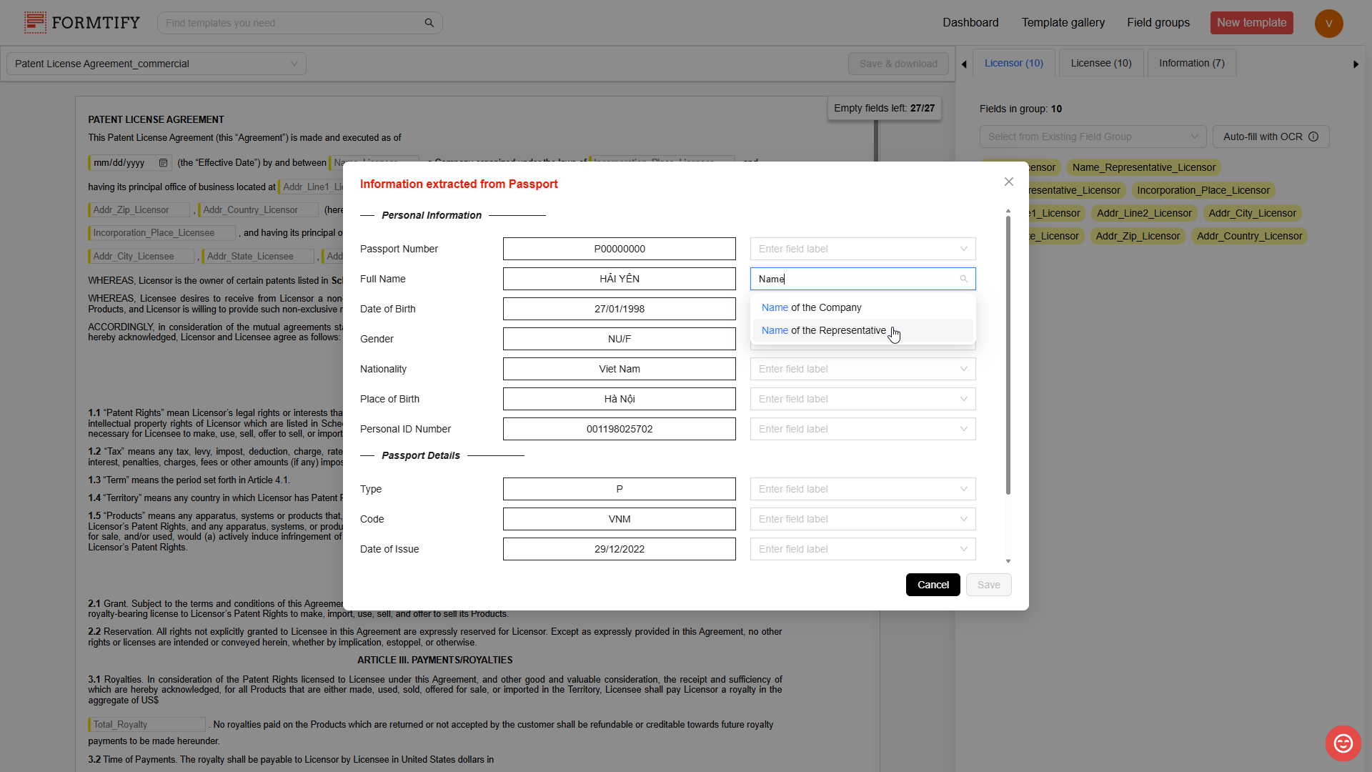 After completing this setup, the system will remember your mappings and automatically apply them in the future, making the document creation process faster and more efficient.